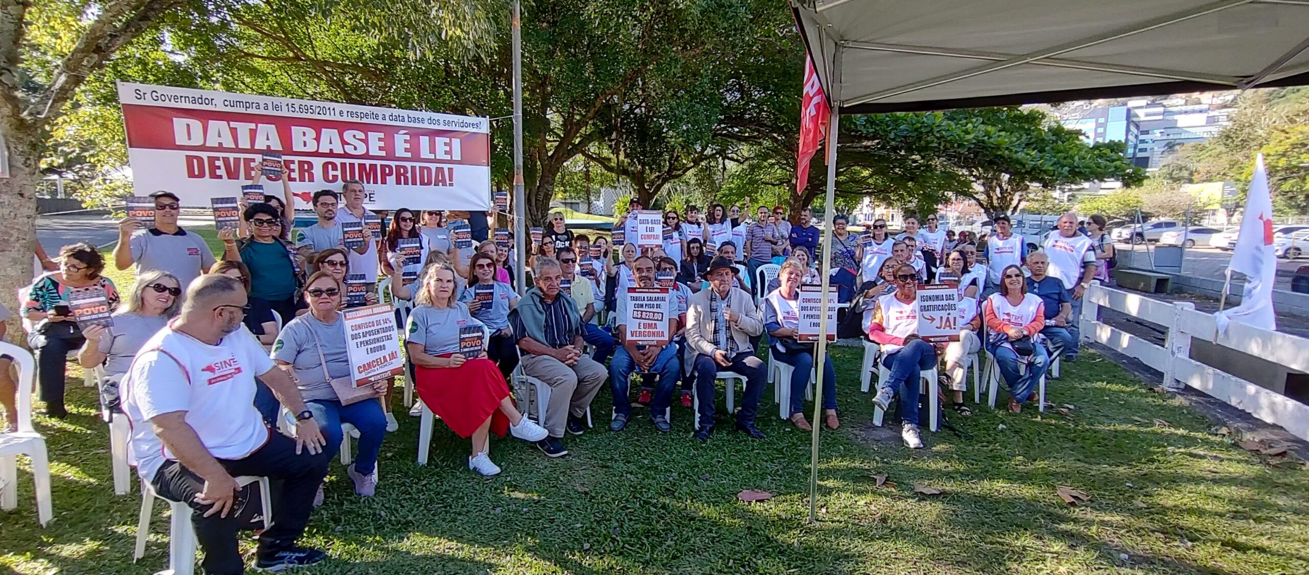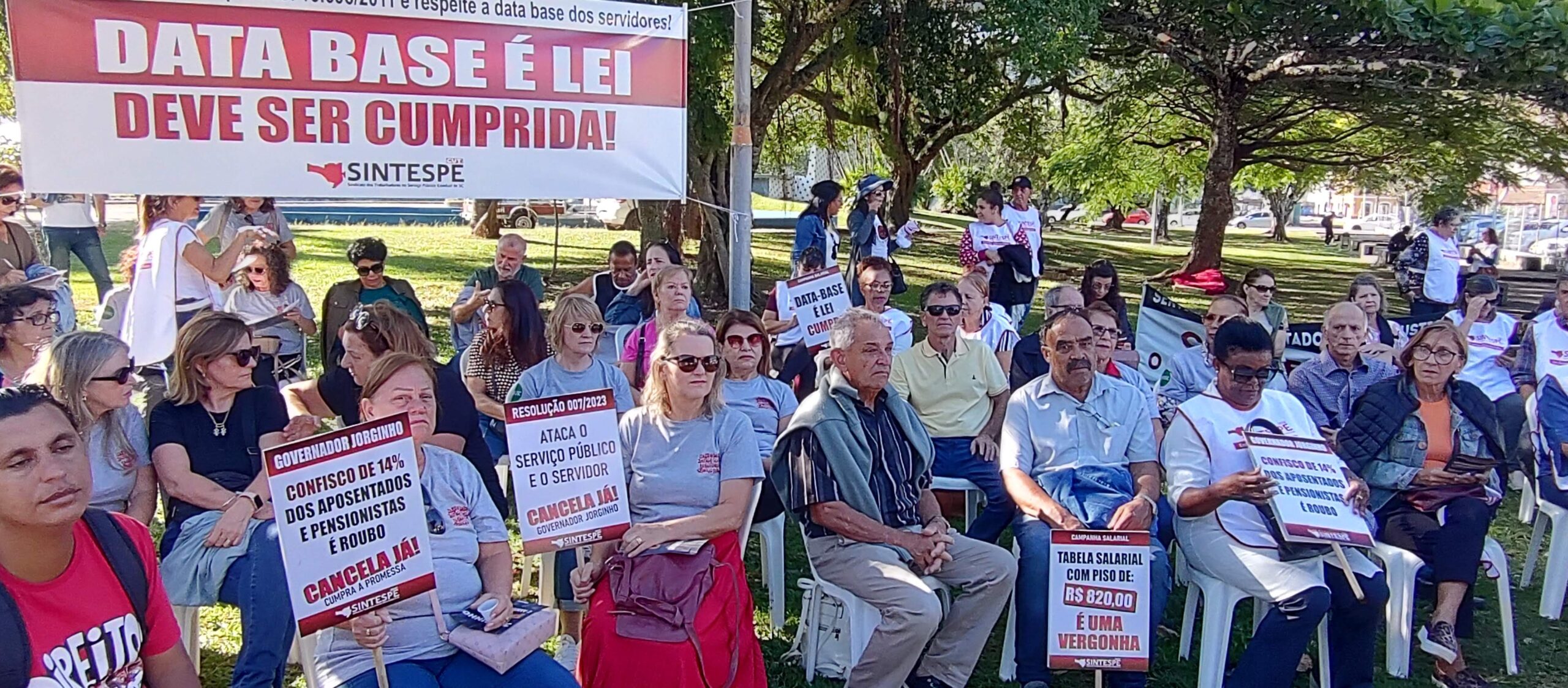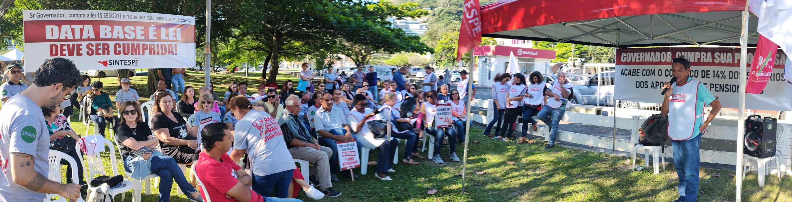 Na quarta-feira (24), a luta por respeito à data-base, por isonomia nas gratificações e contra o confisco de 14% nas aposentadorias e pensões foi marcada por manifestação em frente à Alesc e também por apoio de deputados estaduais da região Sul de Santa Catarina. Das 14 às 17 horas, servidores aposentados em órgãos da administração direta, autarquias e fundações, na educação, na saúde e no judiciário estaduais vindos da região Sul do Estado participaram de mobilização organizada pelo Sintespe, Sindsaúde e Sinjusc para sensibilizar a população e parlamentares sobre o cumprimento da data-base, valorização e o fim do desconto nas aposentadorias e pensões com valor superior a um salário mínimo.