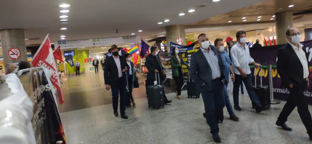 Após a recepção dos parlamentares no aeroporto nesta terça-feira (9), os servidores realizaram um ato público no anexo 2 da Câmara dos Deputados e também acompanharam o segundo turno da votação da Proposta de Emenda à Constituição 23/2021, conhecida como a PEC do Calote nos precatórios. Caso aprovada em segundo turno, a PEC 23 segue para votação no Senado e se não for derrotada a tempo, vai prejudicar entes federativo e também cidadãos, trabalhadores e aposentados, que aguardam o pagamento das dívidas da União já reconhecidas pela justiça. A PEC pretende limitar o pagamento dos precatórios anualmente.